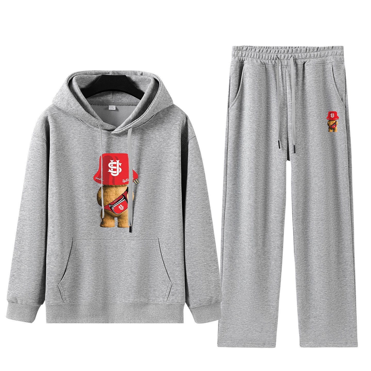 Stylish hip-hop bear print sweatshirt hoodie and pants set ユニセックス男女兼用 おしゃれなヒップホップベアプリントスウェット フーディ&パンツ セットアップ