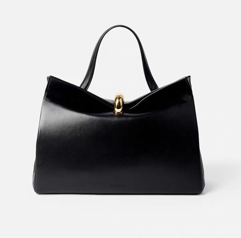 Leather tote shoulder bag with metal buckle バックル付きレザートートショルダーバッグ