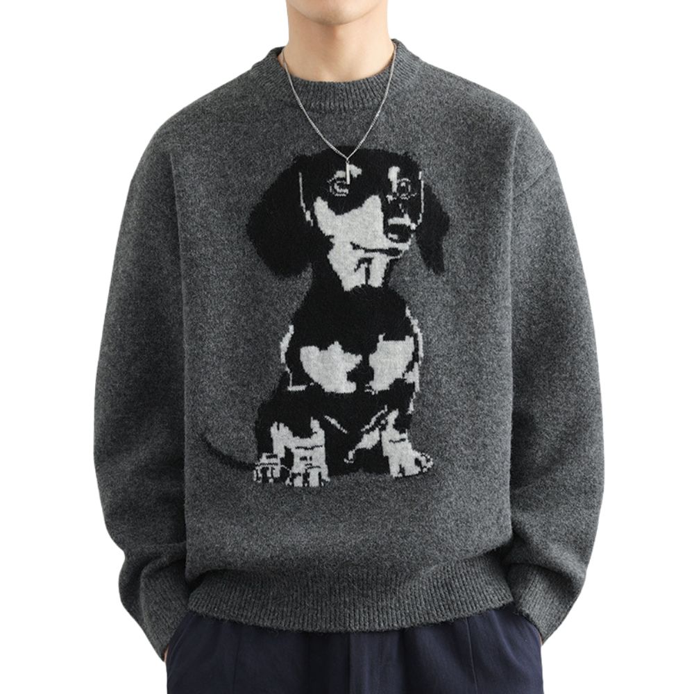 Puppy knitted round neck Sweater 男女兼用ユニセックスパピー子犬編み込み ラウンドネックセーター ニット