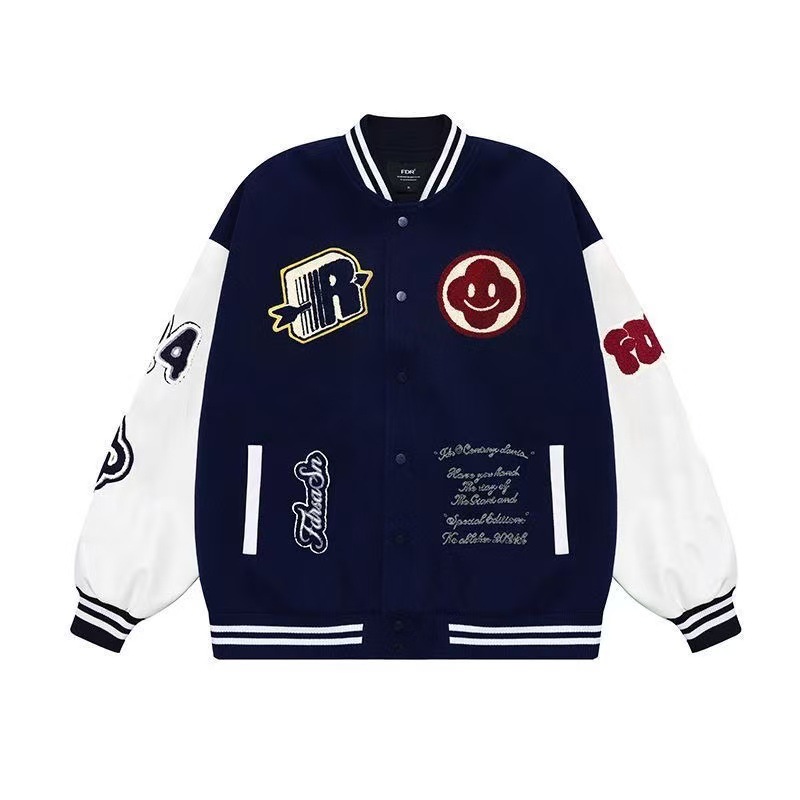 Smile flower and emblem embroidery stadium jacket ユニセックス 男女兼用スマイルフラワー&エンブレム 刺繍スタジアムジャンパー スタジャン MA-1 ボンバー ジャケット ブルゾン