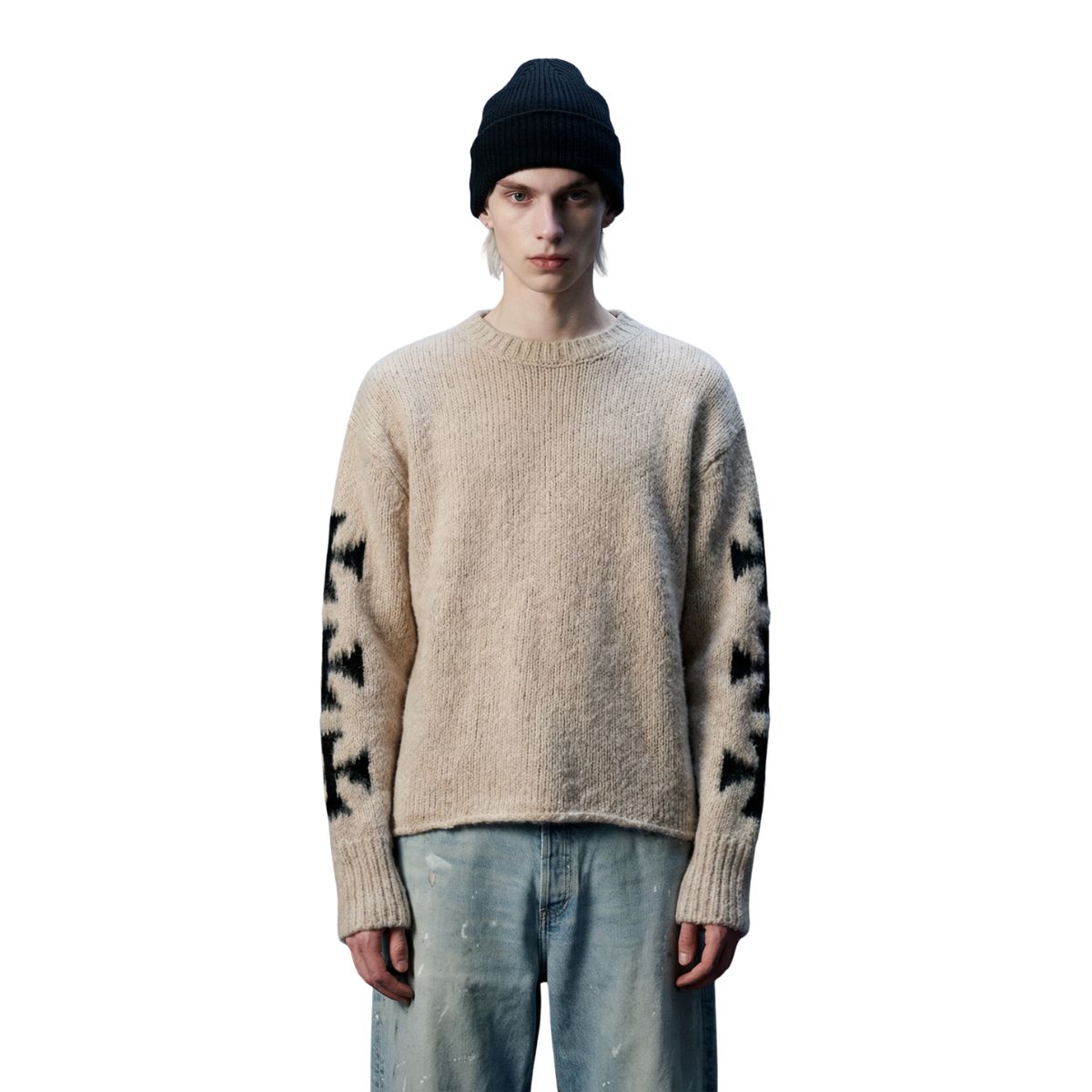 Unisex Mens Brushed Cross Mohair Knit Sweater アート クロス 十字架 スリーブ 柄 モヘア セーター