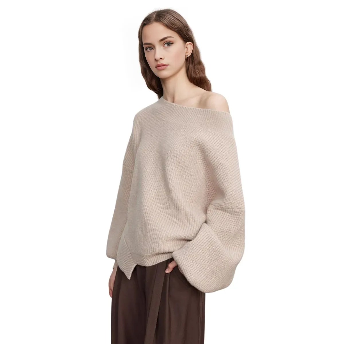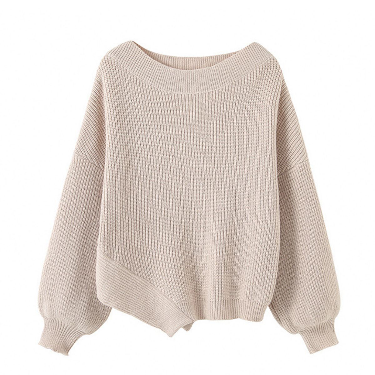 Women Sonia Asymmetrical Hem Sweater Wool Knit 丸首ラウンドネック ウールニット アシンメトリーヘムセーター