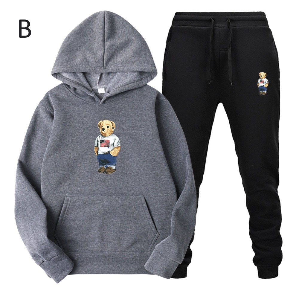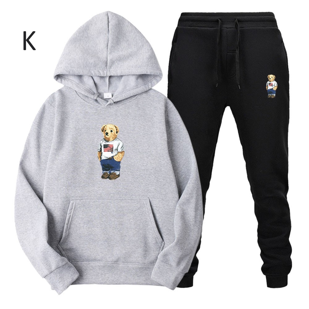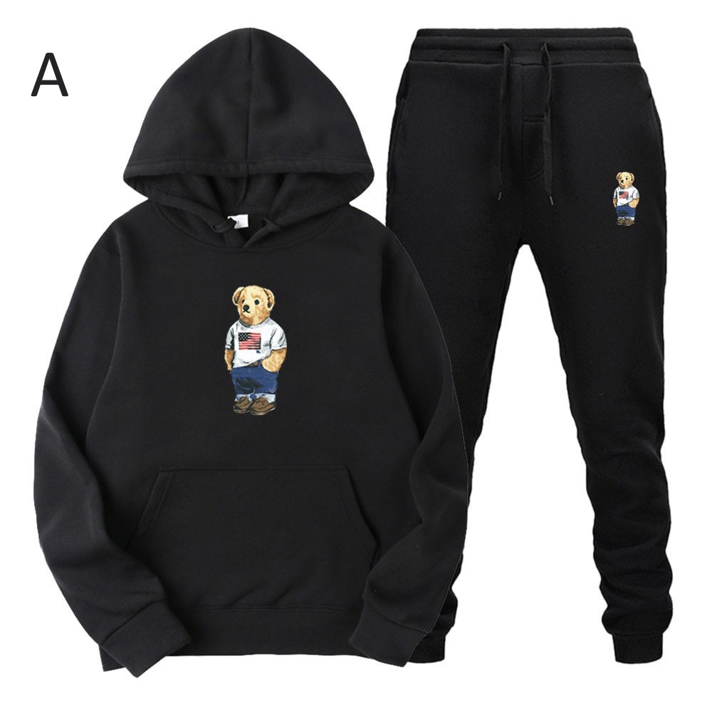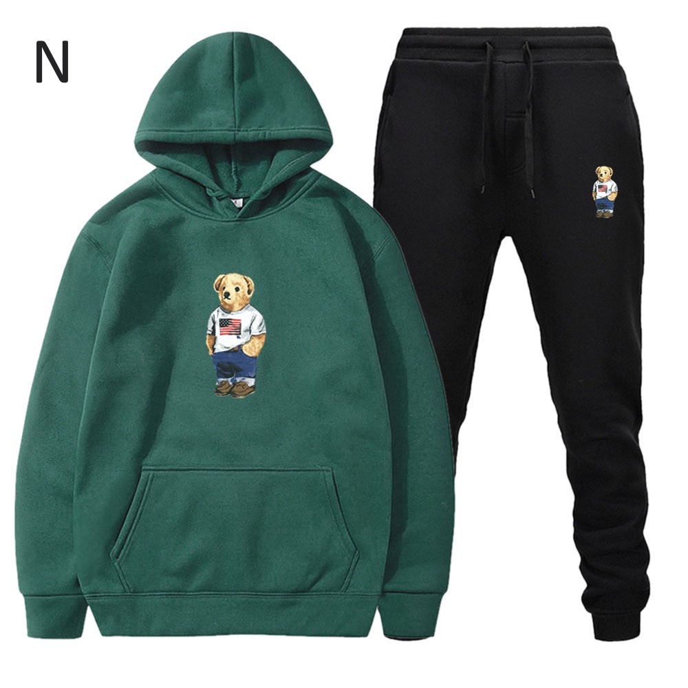 Teddy bear print hoodie and pants set ユニセックス男女兼用 テディーベア熊プリントスウェット フーディ&パンツ セットアップ