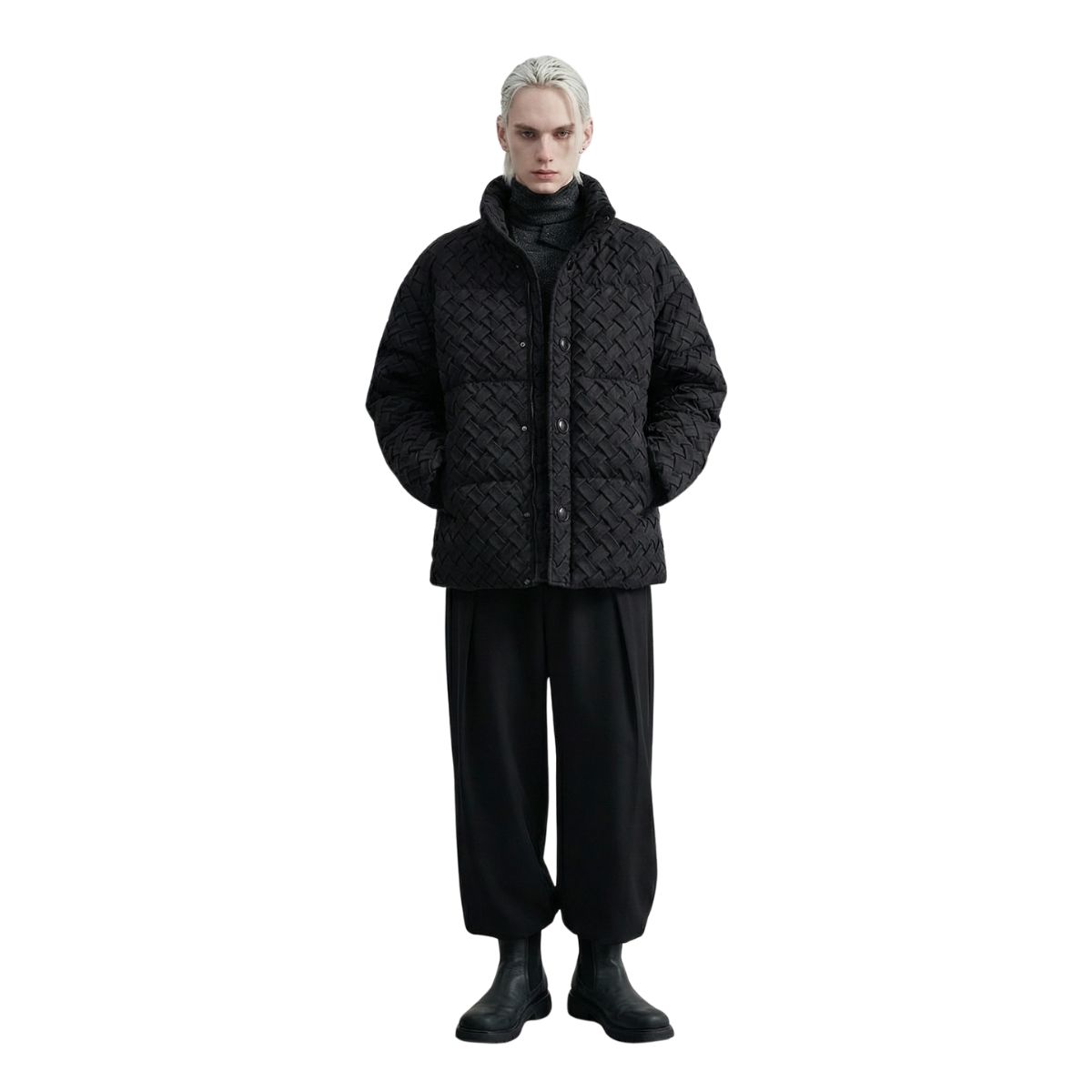 Men's Unisex Intreccio mesh woven Oversize Parka Padded Puffer Jackets メンズ 男女兼用 オーバーサイズ イントレチャート 編み込み 中綿 ダウン ジャケット