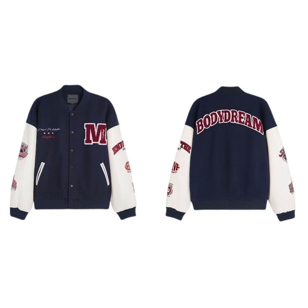 BODYDREAM Letter Patch Embroidered Stadium Jumper ユニセックス 男女兼用BODYDREAM レターエンブレム刺繍刺繍スタジャンスタジアムジャンパー MA-1 ボンバー ジャケット ブルゾン