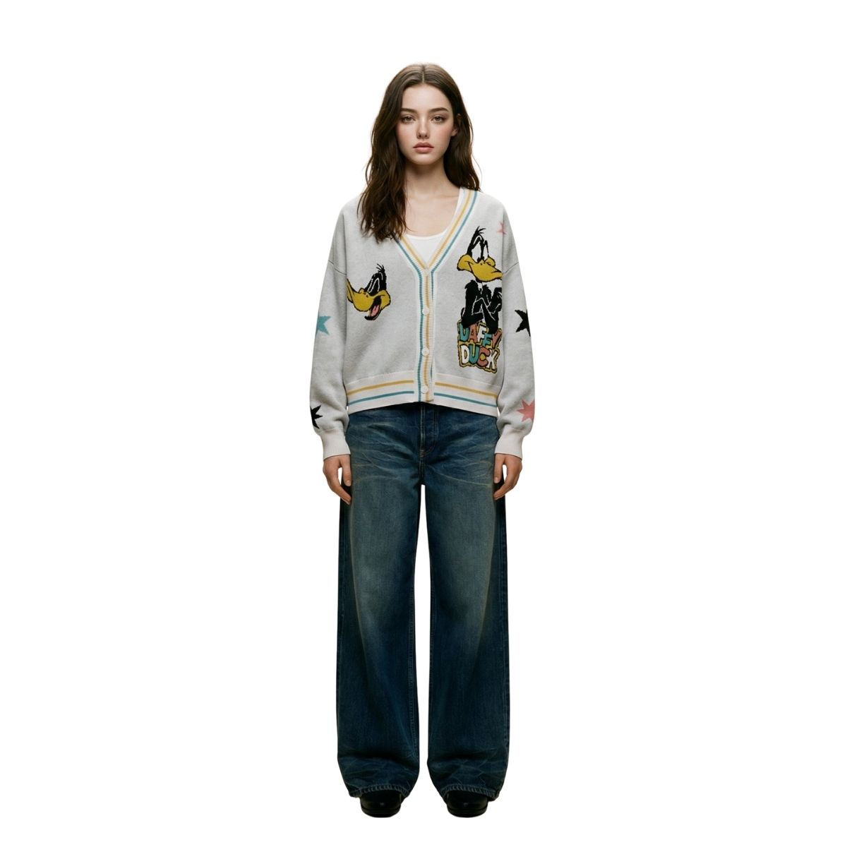 Women's Daffy Duck Vneck Sweater Cardigans Looney Tunes ダフィー・ダック Vネック カーディガン セーター ルーニー・テューンズ