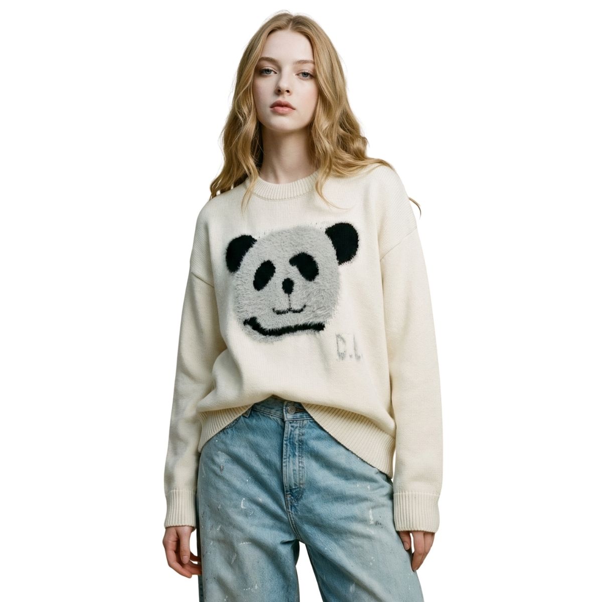 Unisex Panda Wool braid sweater ユニセックス 男女兼用 パンダ 編み込み プルオーバー ウール セーター