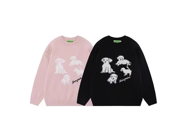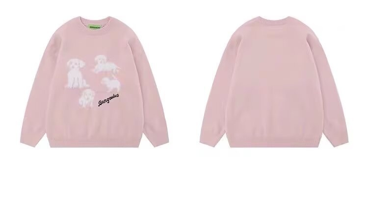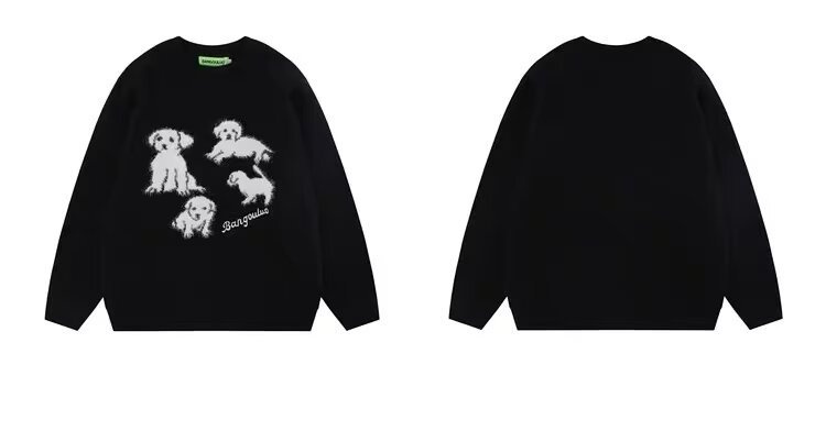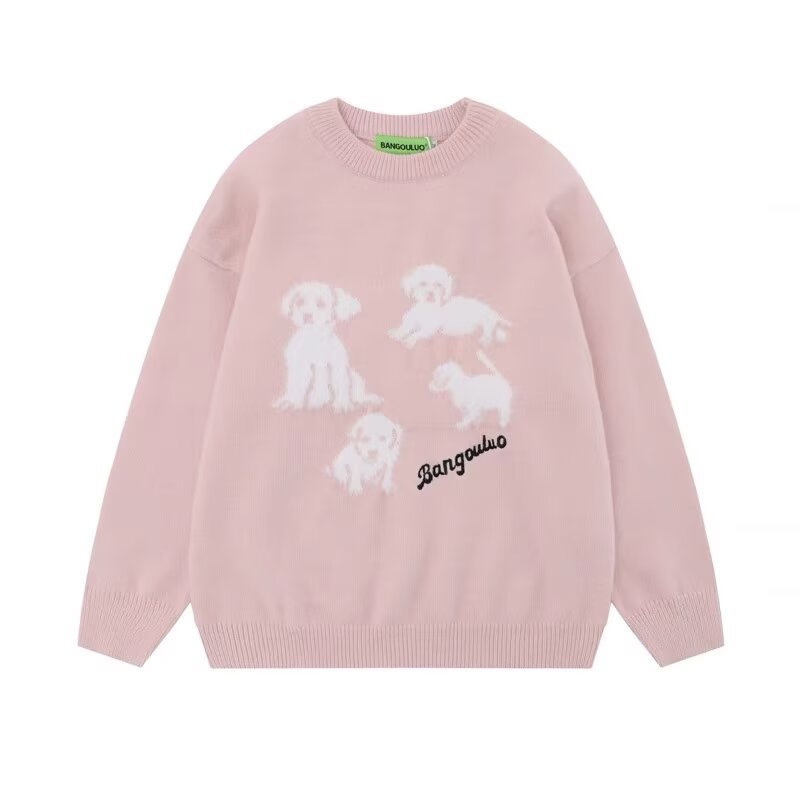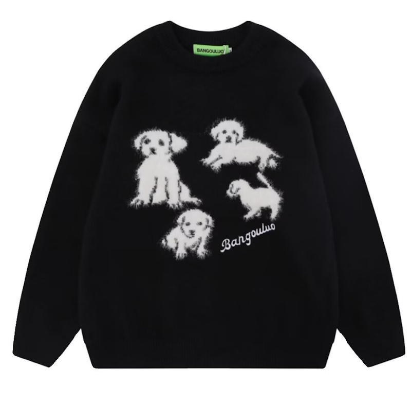 Unisex Puppy knitted round neck sweater ユニセックス 男女兼用 パピー子犬編み込み プルオーバー ウール セーター