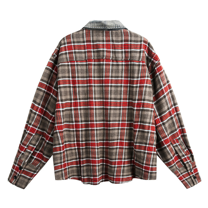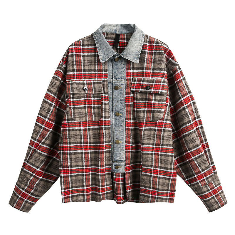Denim & Check Patchwork Denim Jacket ユニセックス 男女兼用デニム&チェックパッチワークGジャン ブルゾンジャケット