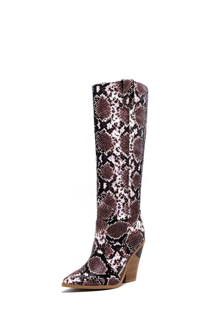 Women's high-heeled long tube show boots カラー レザーウエスタンスタイル ロングブーツ
