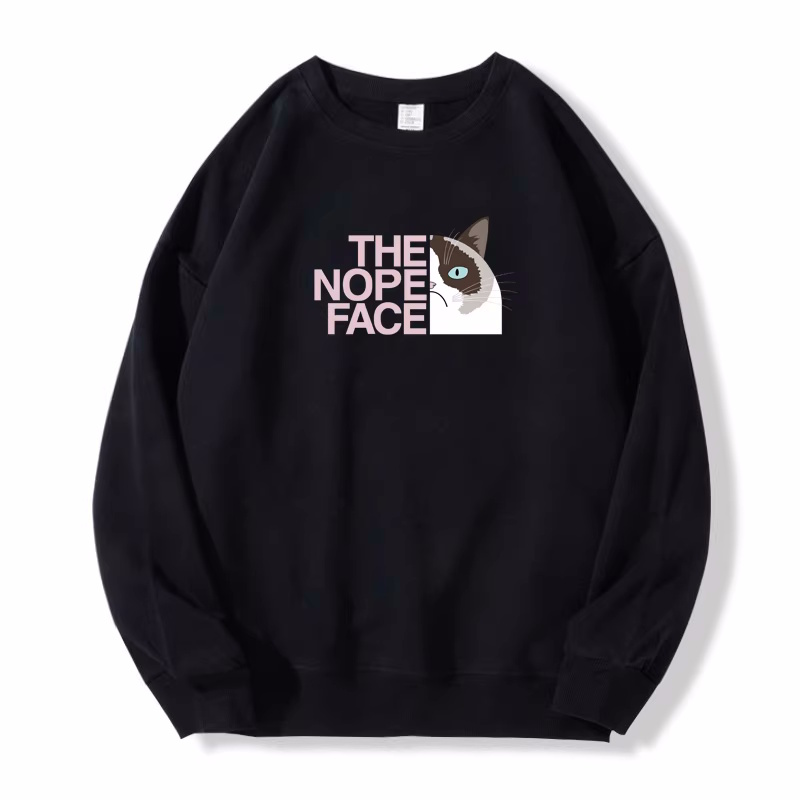 NOPE Half Face Cat Print Sweat shirts ユニセックス男女兼用 ノープランハーフキャット猫プリント スウェット トレーナー