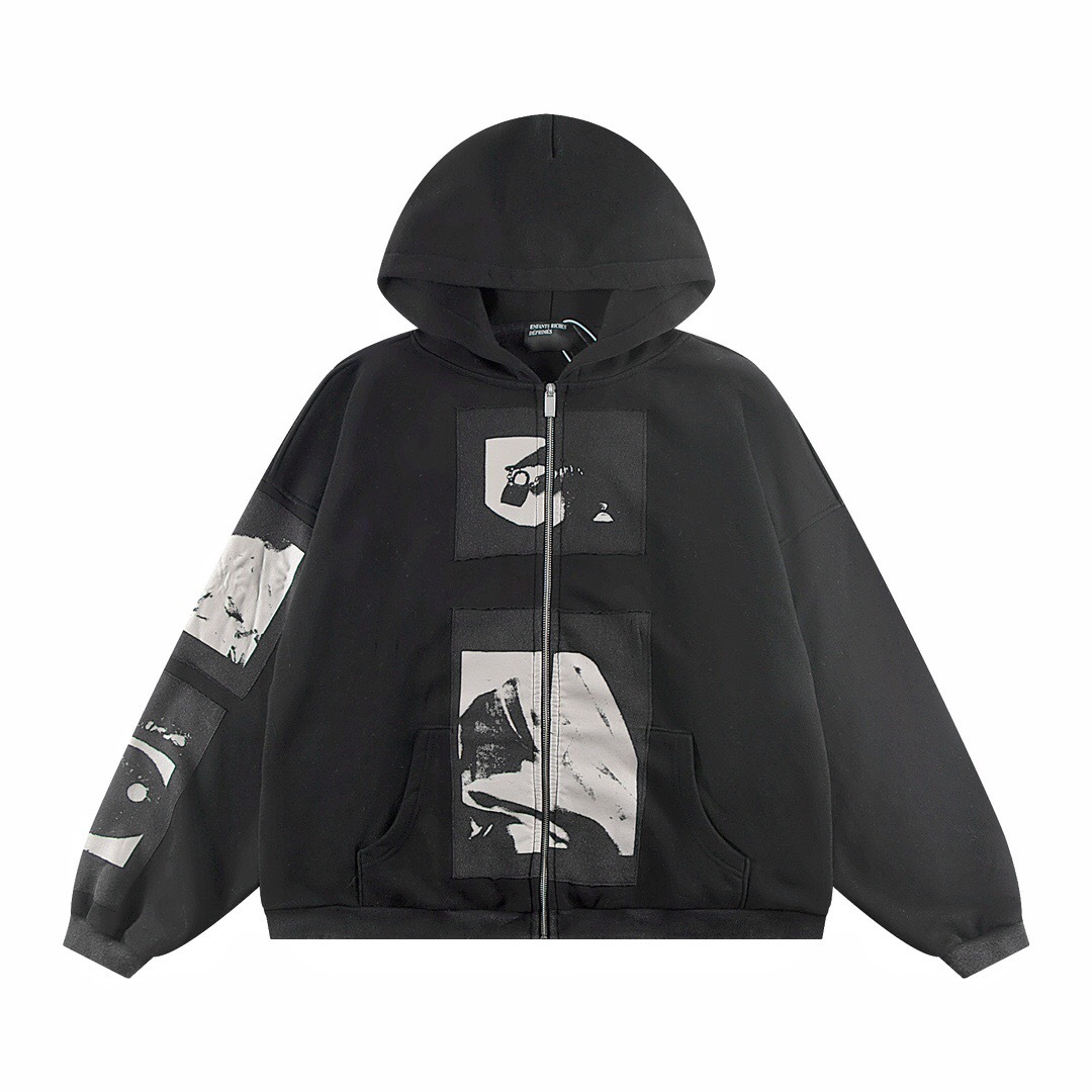 Second Generation Madonna Illustration Patchwork Distressed Zip-Up Washed Loose Hoodie jacket Sweat ユニセックス男女兼用セカンドジェネレーション マドンナ イラスト パッチワーク ダメージジップアップ ウォッシュ ルーズフーディスウェット