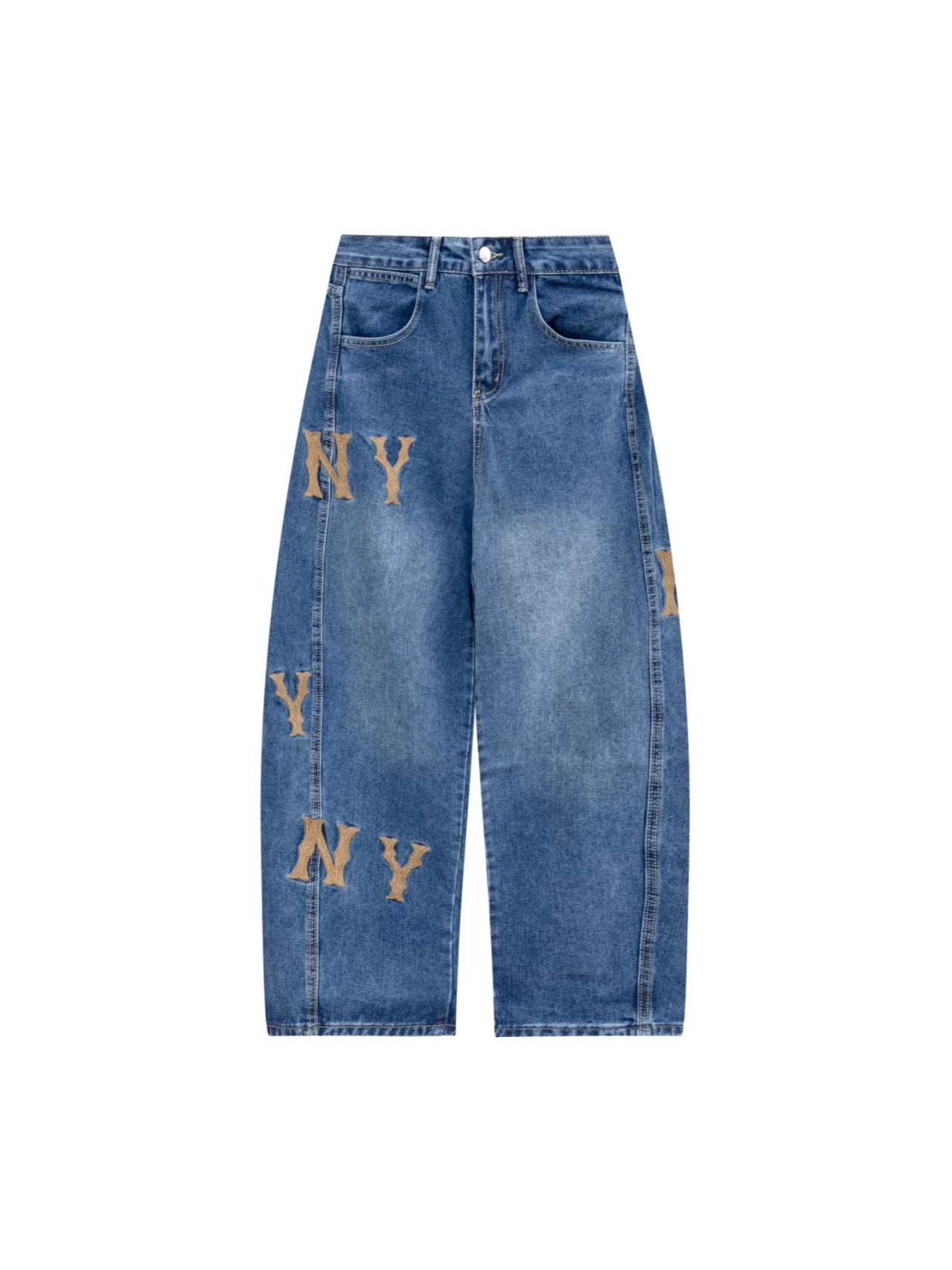 MLB Korea Women's Wide Leg Jeans with Logo エムエルビー コリア 海外限定 NY ロゴ入りレディースワイドレッグジーンズ NY y2k ニューヨークヤンキース
