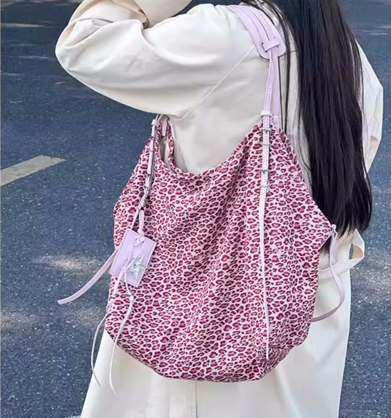 Pink Leopard Large Capacity Tote Shoulder Underarm Bag ピンクレオパードヒョウ柄ラージキャパシティートートショルダーバッグ