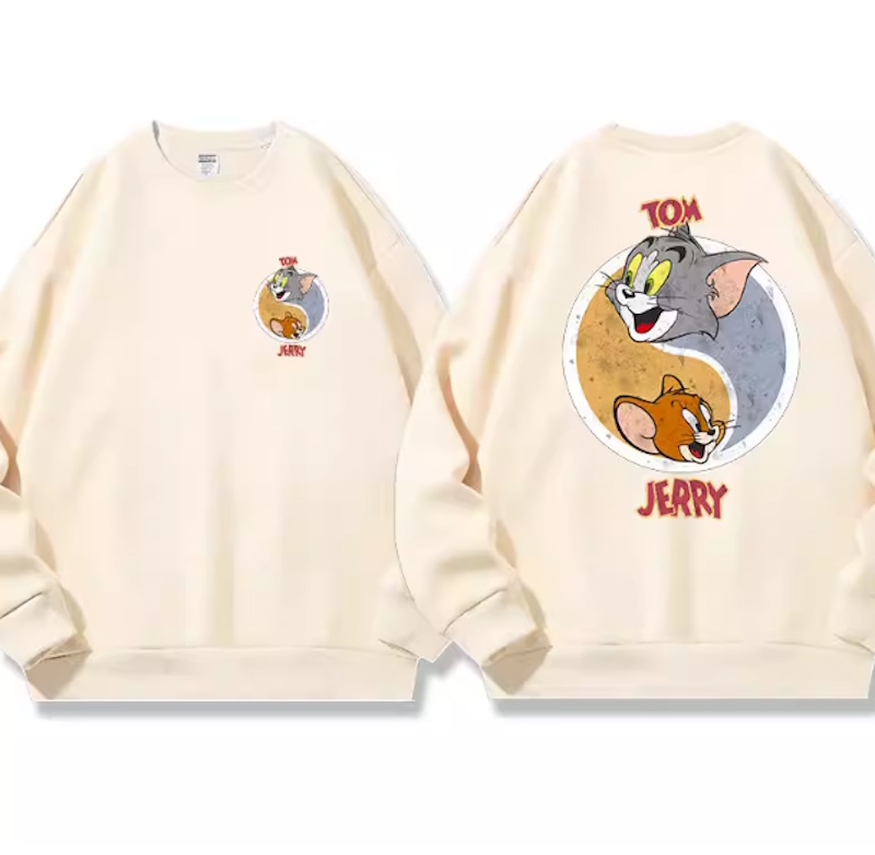 Circle Tom and Jerry Print round neck long sleeve T-shirt ユニセックス 男女兼用サークル トム&ジェリープリントラウンドネック スウェットトレーナー