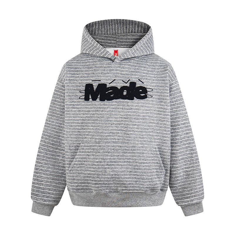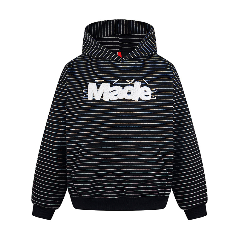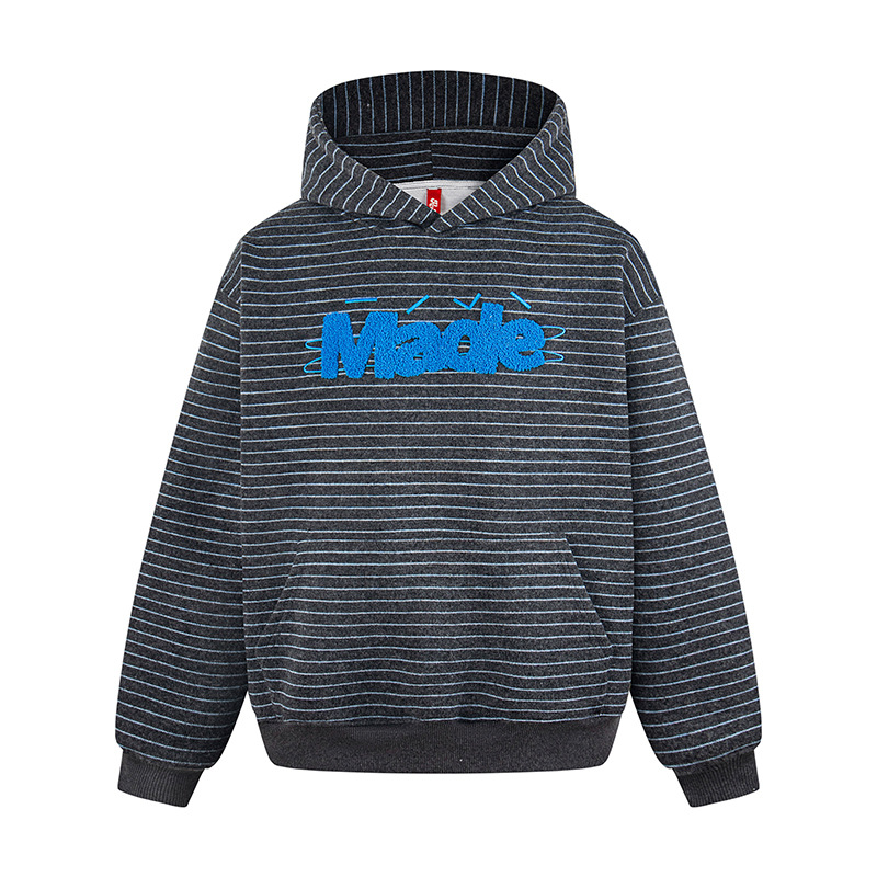 Letter logo embroidered terry cloth striped hoodie ユニセックス 男女兼用ストライプボーダーレターロゴ刺繍フーディスウェット