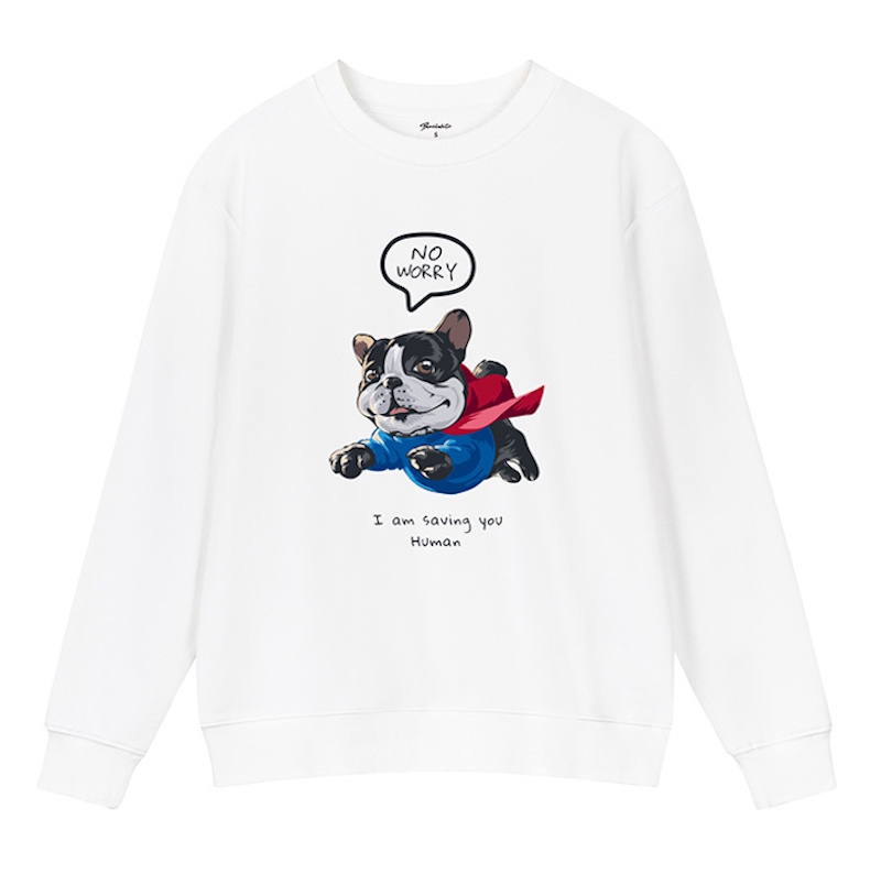 Bulldog Superman Print round neck long sleeve Sweatshirts ユニセックス 男女兼用ブルドッグスーパーマンプリントラウンドネック スウェットトレーナー