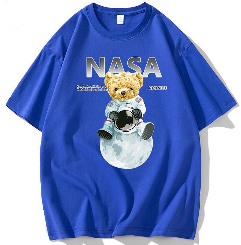 NASA x Earth x Astronaut Bear round neck short sleeve T-shirt ユニセックス 男女兼用NASAナサ×地球×宇宙飛行士ベア熊プリントラウンドネック Tシャツ
