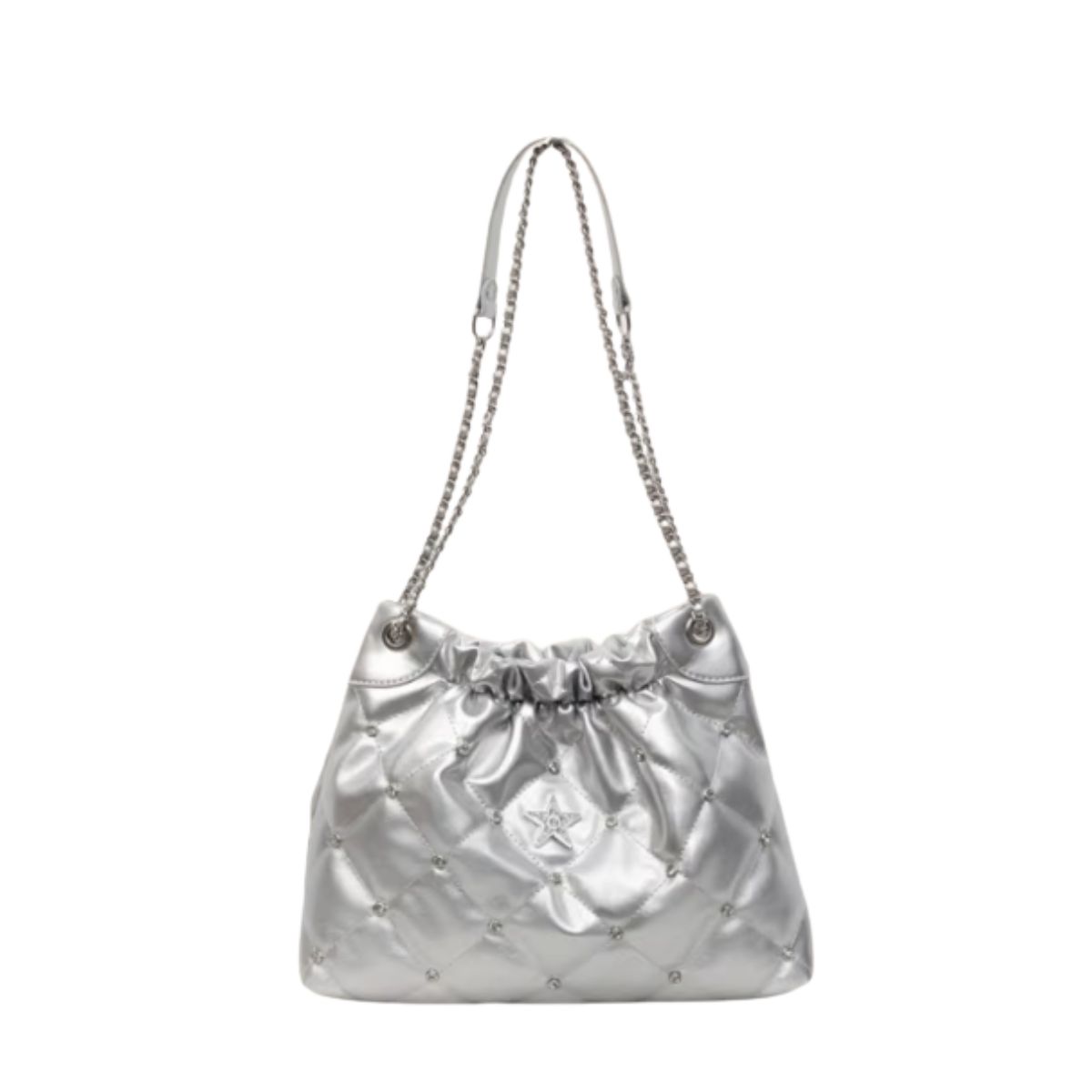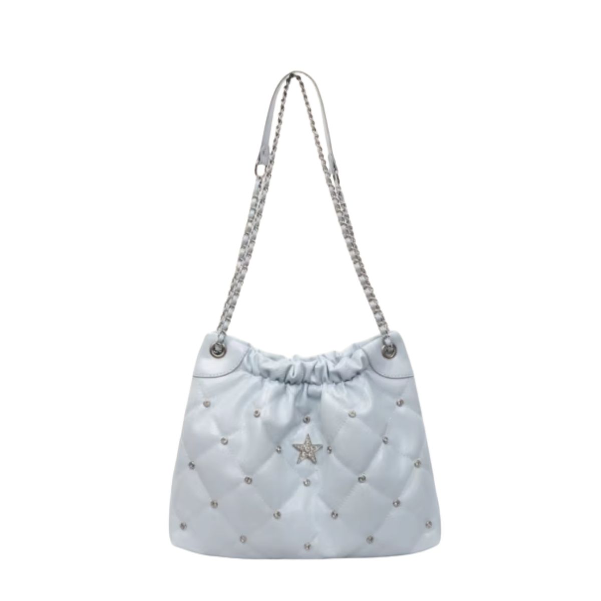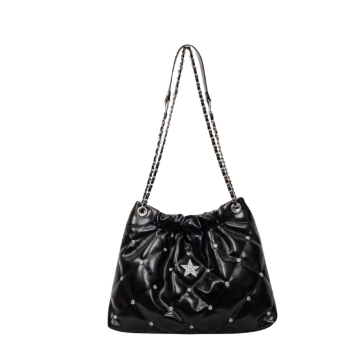 Quilted Star & Pavé Chain Drawstring Leather Tote Shoulder Crossbody Bag キルティングスター&パヴェチェーン巾着レザートートショルダークロスボディバッグ