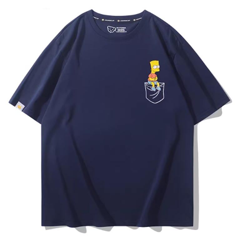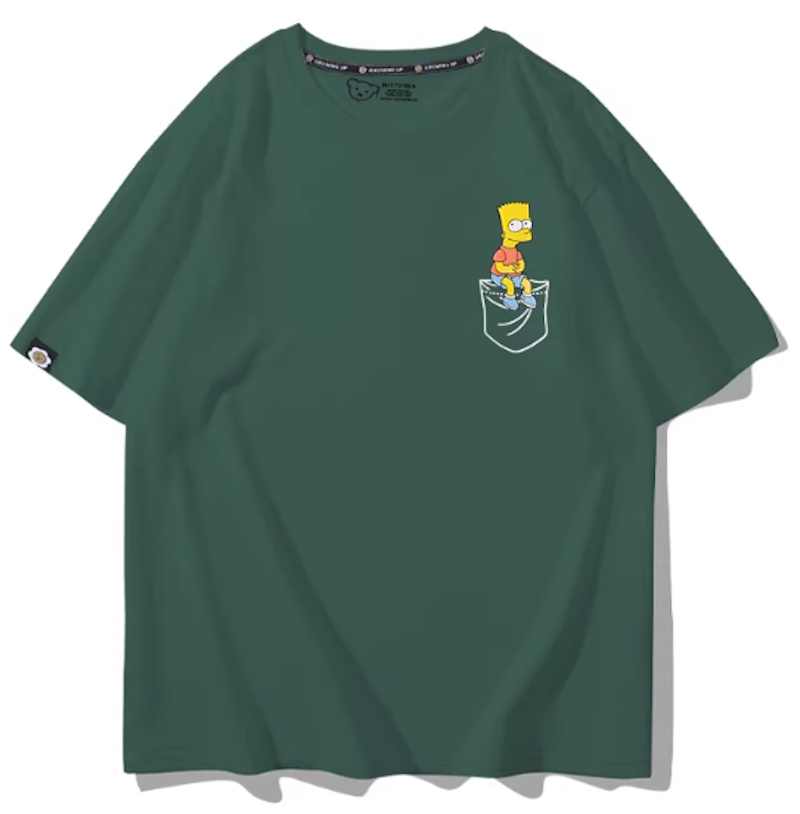 Bart Simpson sitting in your pocket Short Sleeve T-Shirt ユニセックス 男女兼用シッティングバートシンプソンプリント 半袖 Tシャツ