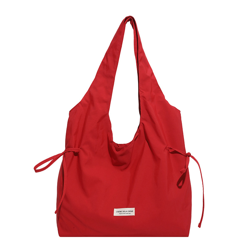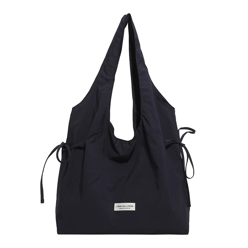 Drawstring shoulder tote bag with horizontal ribbon perfect for commuting to work or school 巾着 横リボン ショルダートート 通勤通学ママバッグ