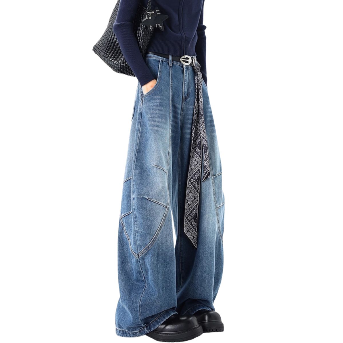 Washed wide curve silhouette baggy denim pantsJeans ウォッシュ ワイドカーブシルエットバギーデニムパンツ ジーンズ