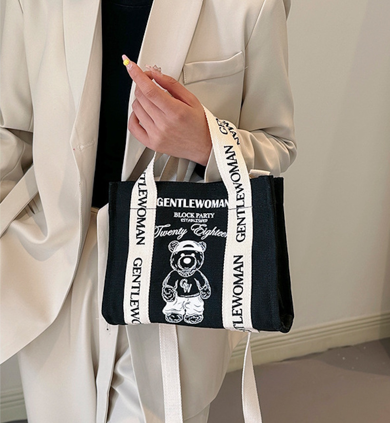 Gentlewoman Small Bear & Letter Canvas Tote Shoulder Shopping Bag ジェントルウーマンクマ&レターキャンバストートショルダーショッピングバッグ 通勤通学ママバッグ