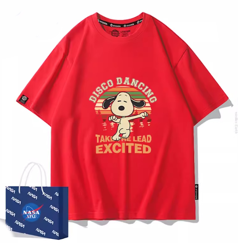 Disco Dancing Snoopy Print Short Sleeve T-Shirt ユニセックス 男女兼用ディスコダンシングスヌーピープリント半袖 Tシャツ