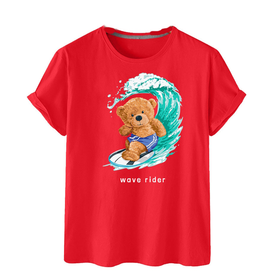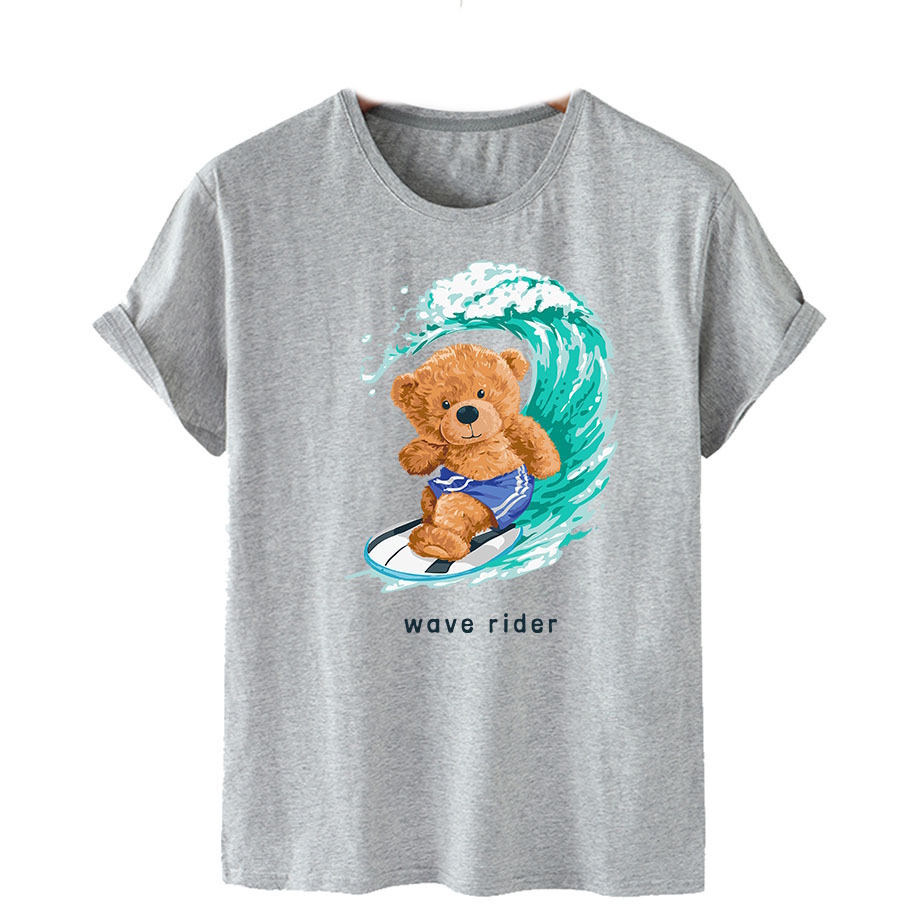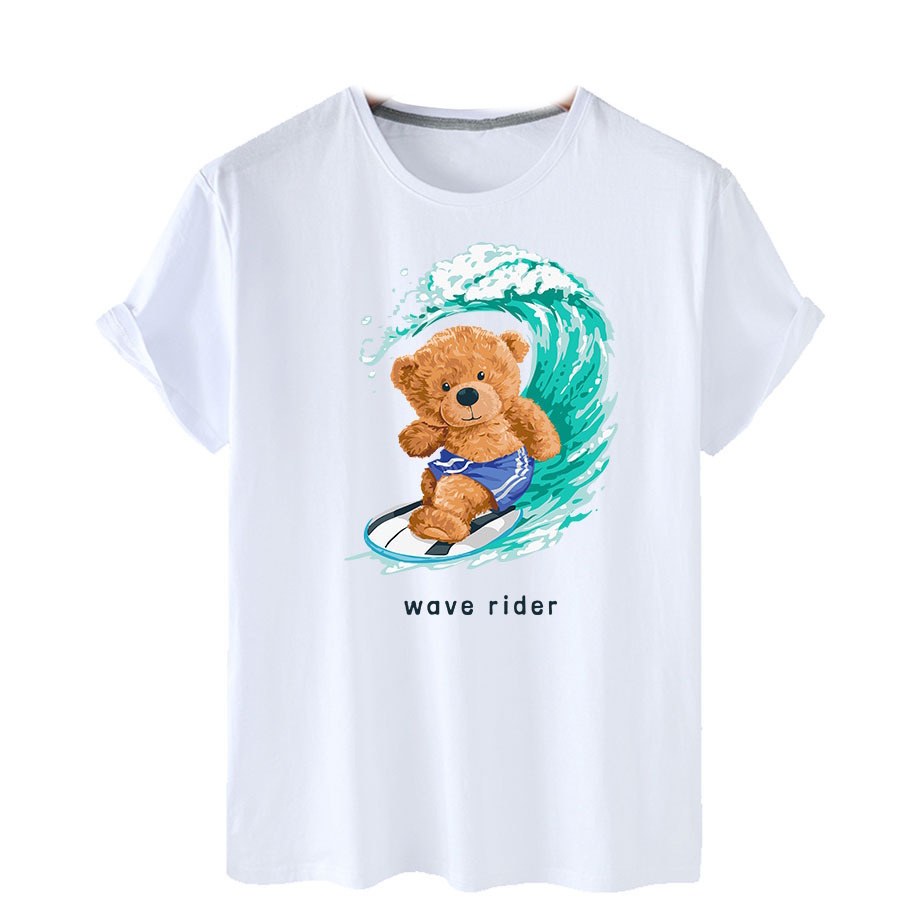 Bear Wave Rider Print Short Sleeve T-Shirt ユニセックス 男女兼用ウェブライダーベアプリント半袖 Tシャツ