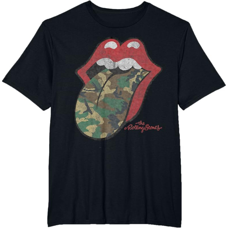 Rolling Stones-style camouflage tongue T-shirt ユニセックス 男女兼用ローリングストーンスタイルカモフラージュ迷彩ベロプリント Tシャツ