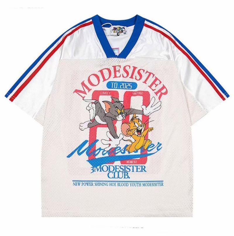 Unisex MODESISTER Tom and Jerry Chase Numbered V-Neck Mesh Uniform T-Shirt ユニセックス 男女兼用モデシスター チェイサートムとジェリーナンバリングVネックメッシュユニホームTシャツ