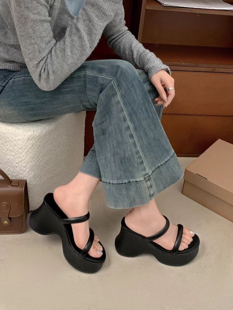 Open-toe platform chunky high heel sandals オープントゥ厚底チャンキーハイヒールサンダル
