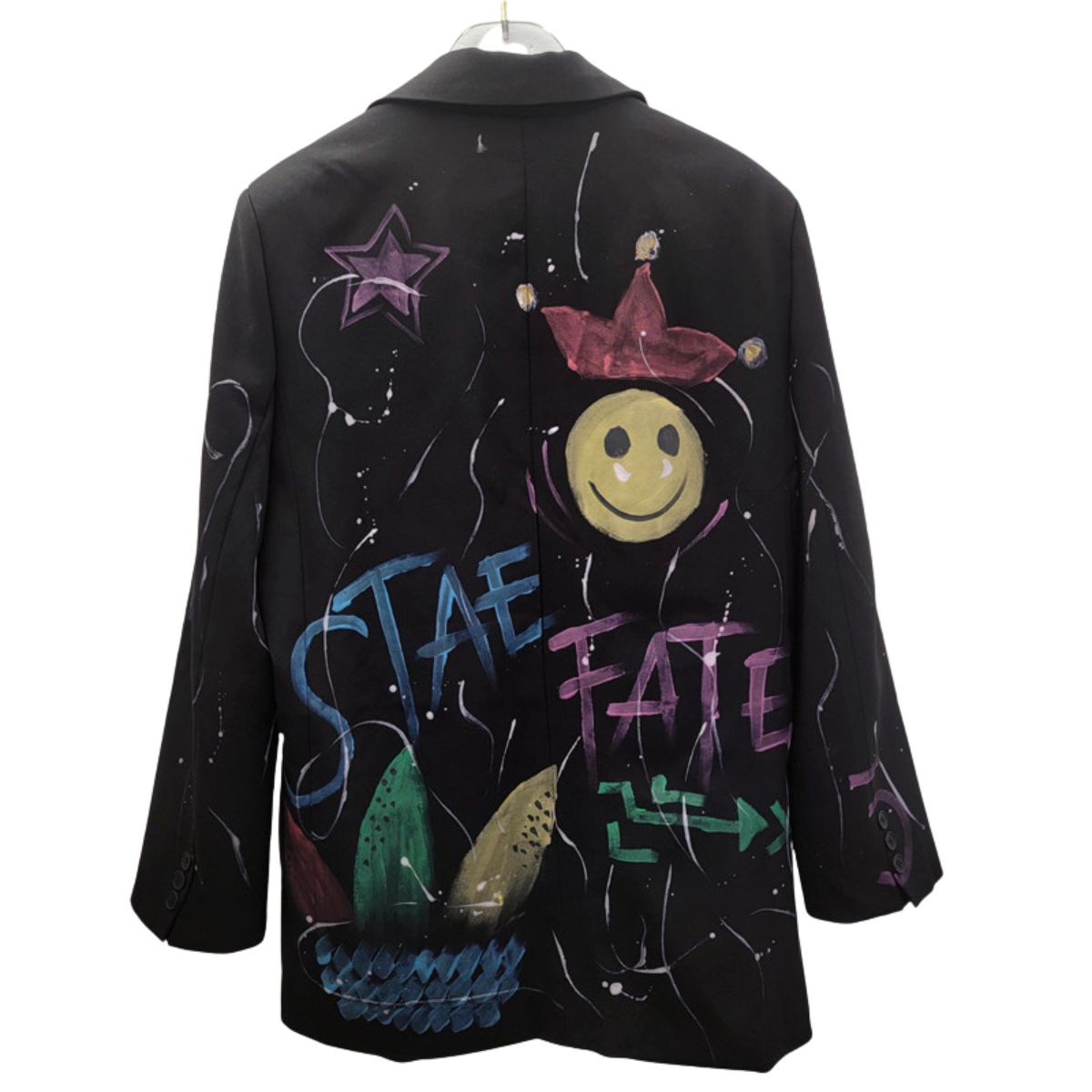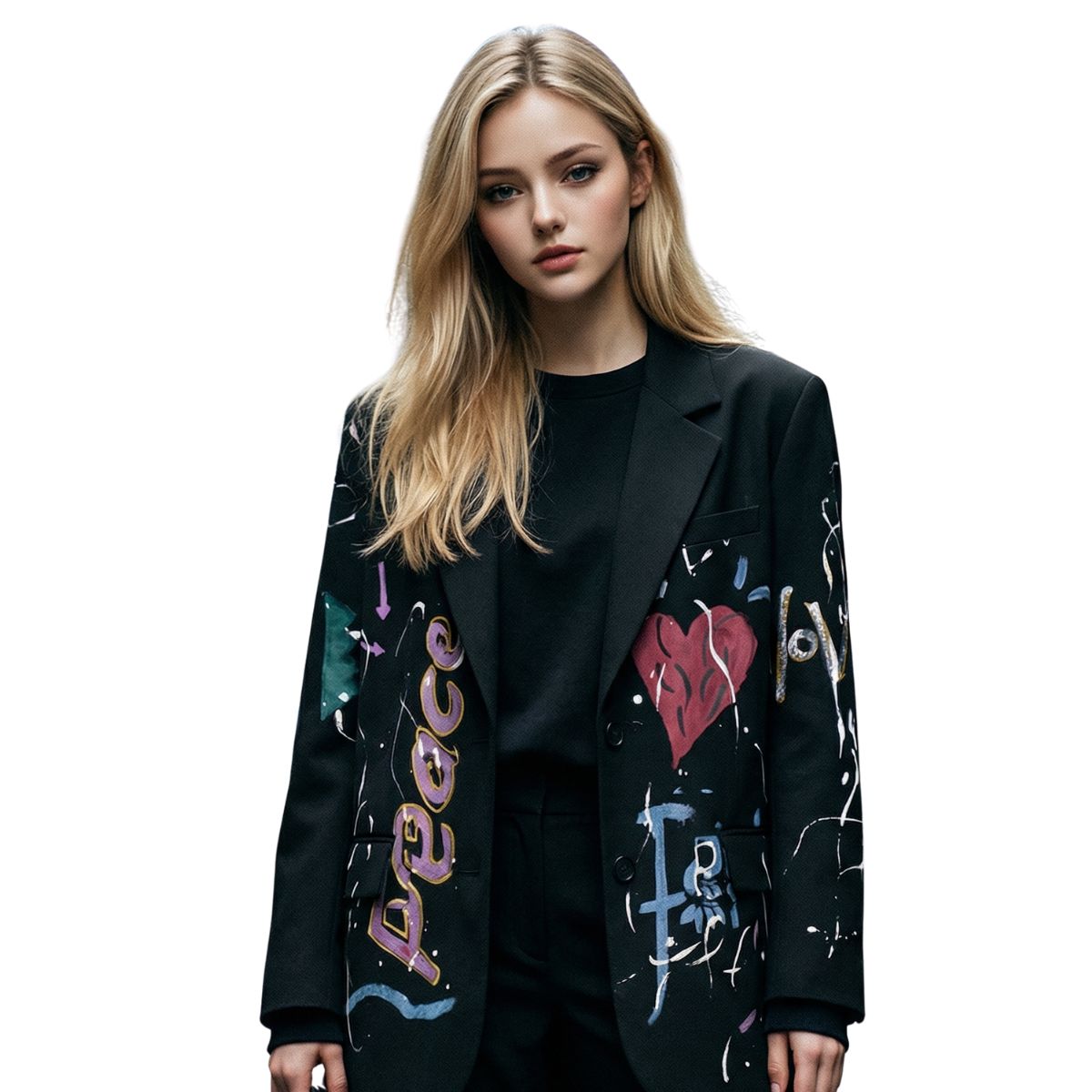 Women's Graffiti Paint Blazer Jacket 落書き グラフィック グラフィティ ペイント ラペル ブレザー ジャケット