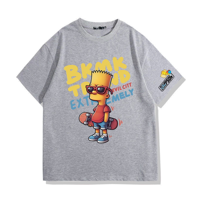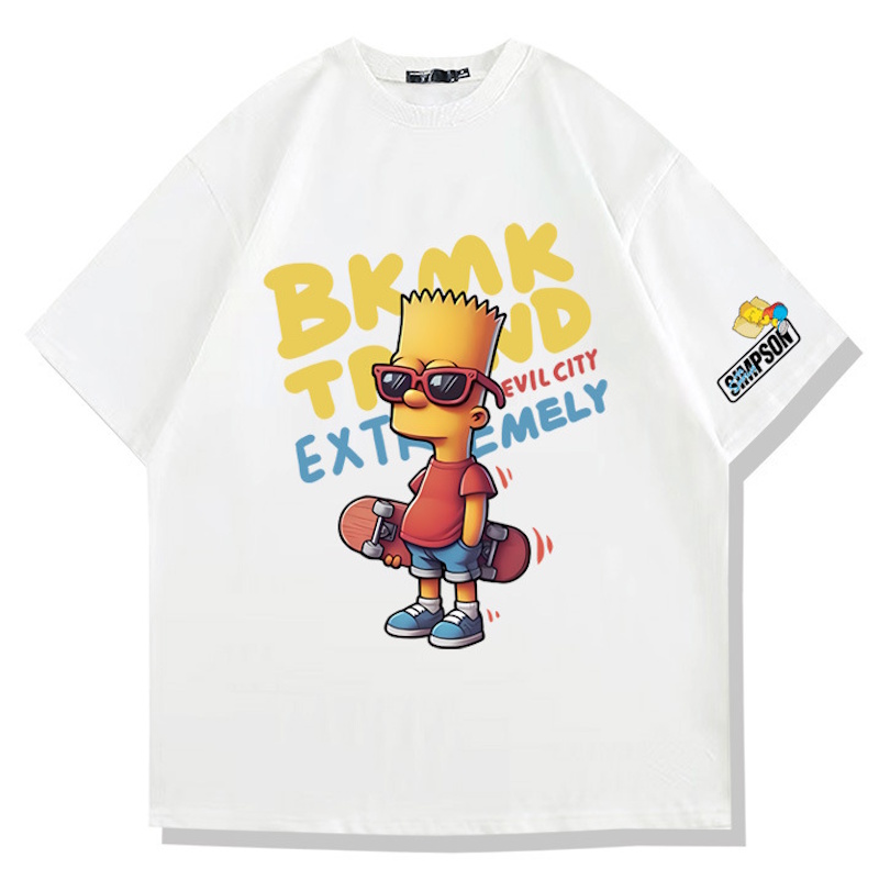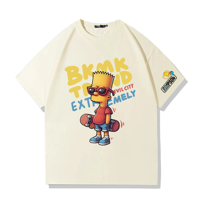 Unisex Bart Simpson x Skateboarding Print T-shirt 男女兼用 ユニセックスバートシンプソン×スケートボードスケボープリント 半袖 Tシャツ