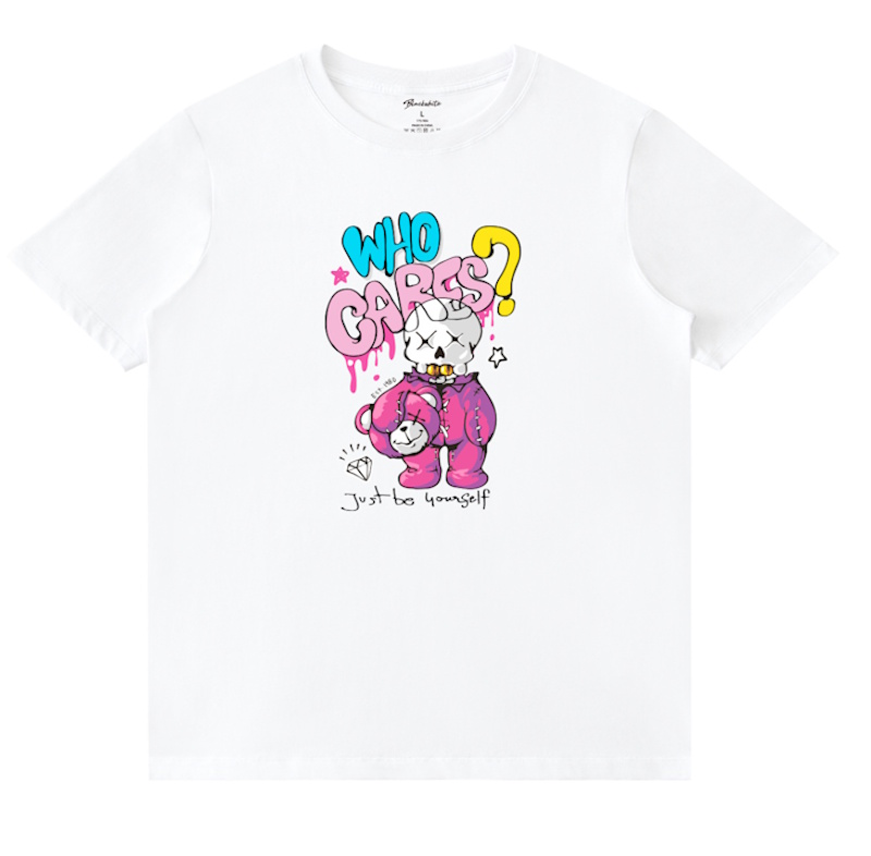 Unisex black white who cares Costume kaws Skull Print T-shirt 男女兼用 ユニセックススカルカスタムカウズプリント 半袖 Tシャツ