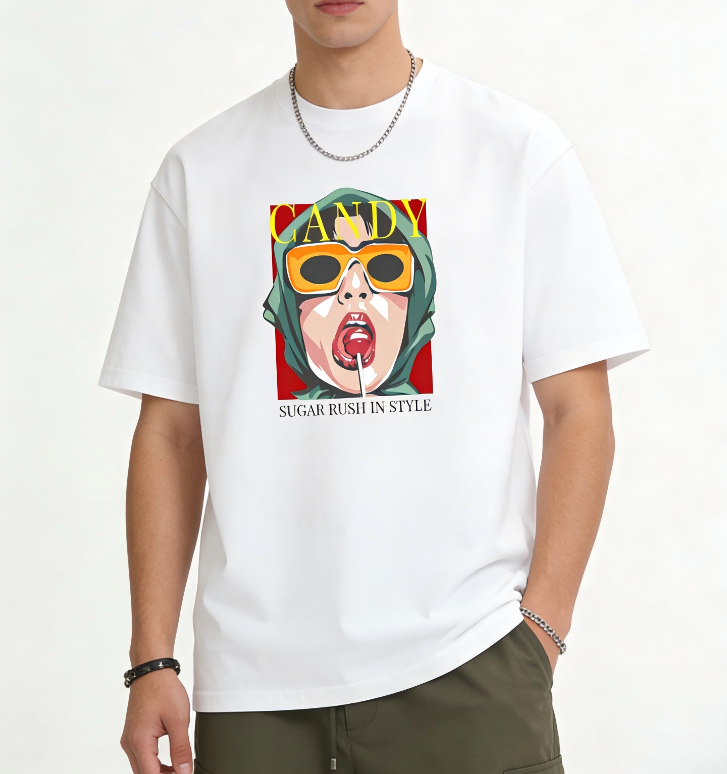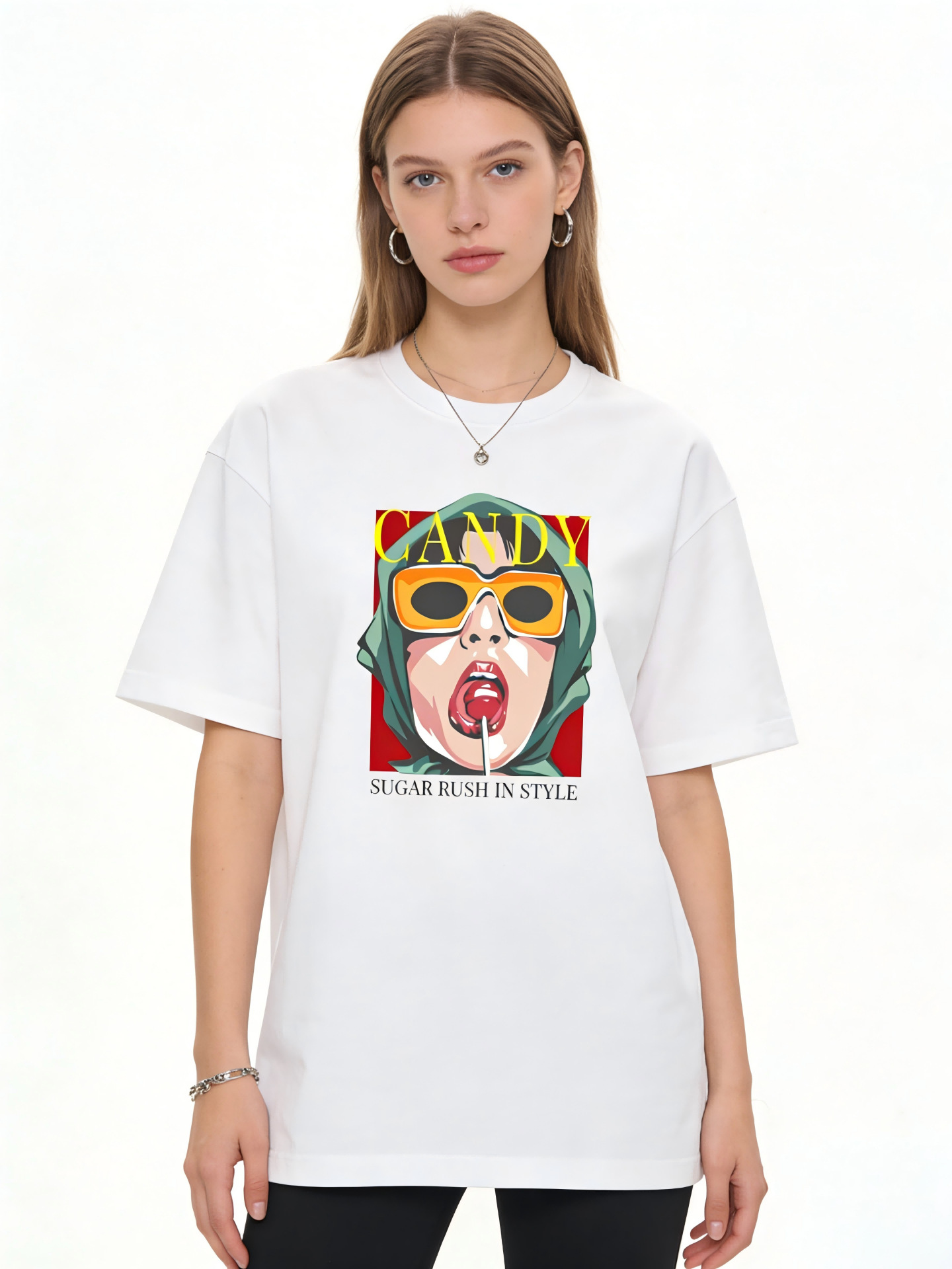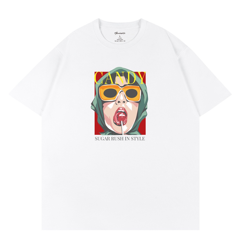 Unisex black white CANDY trendy portrait print T-shirt 男女兼用 ユニセックスCANDYトレンディポートレートプリント 半袖 Tシャツ