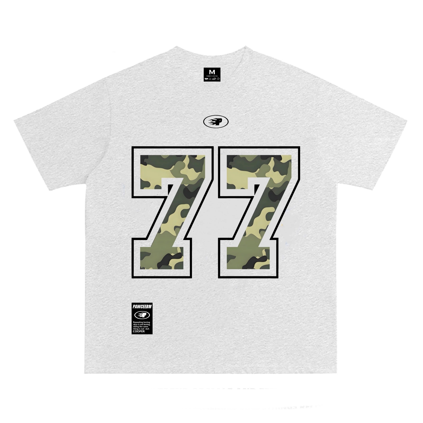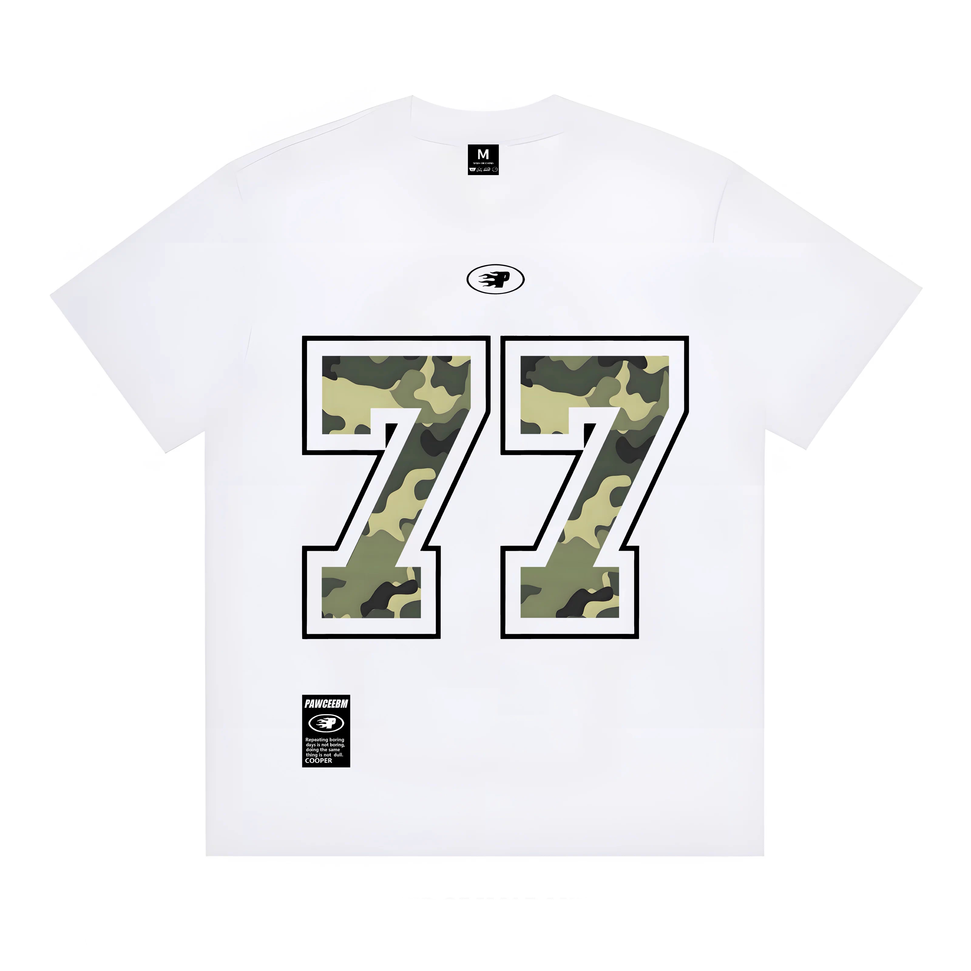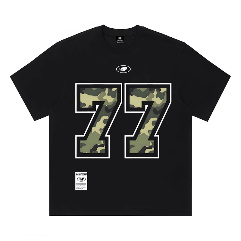Unisex PAWCEE 77 Camouflage Number Print T-shirt 男女兼用 ユニセックスPAWCEE 迷彩カモフラージュ77ナンバープリント 半袖 Tシャツ