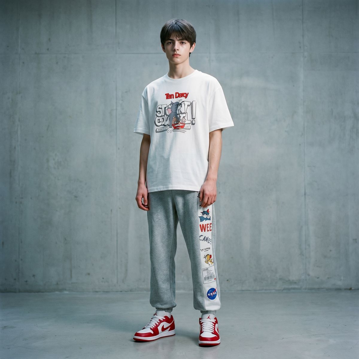 26 Unisex NASA x Tom and Jerry Side Print Sweat Pants Jogger Pant ナサ トムとジェリー トム&ジェリー サイドプリント スウェット ジョガーパンツ ユニセックス 男女兼用