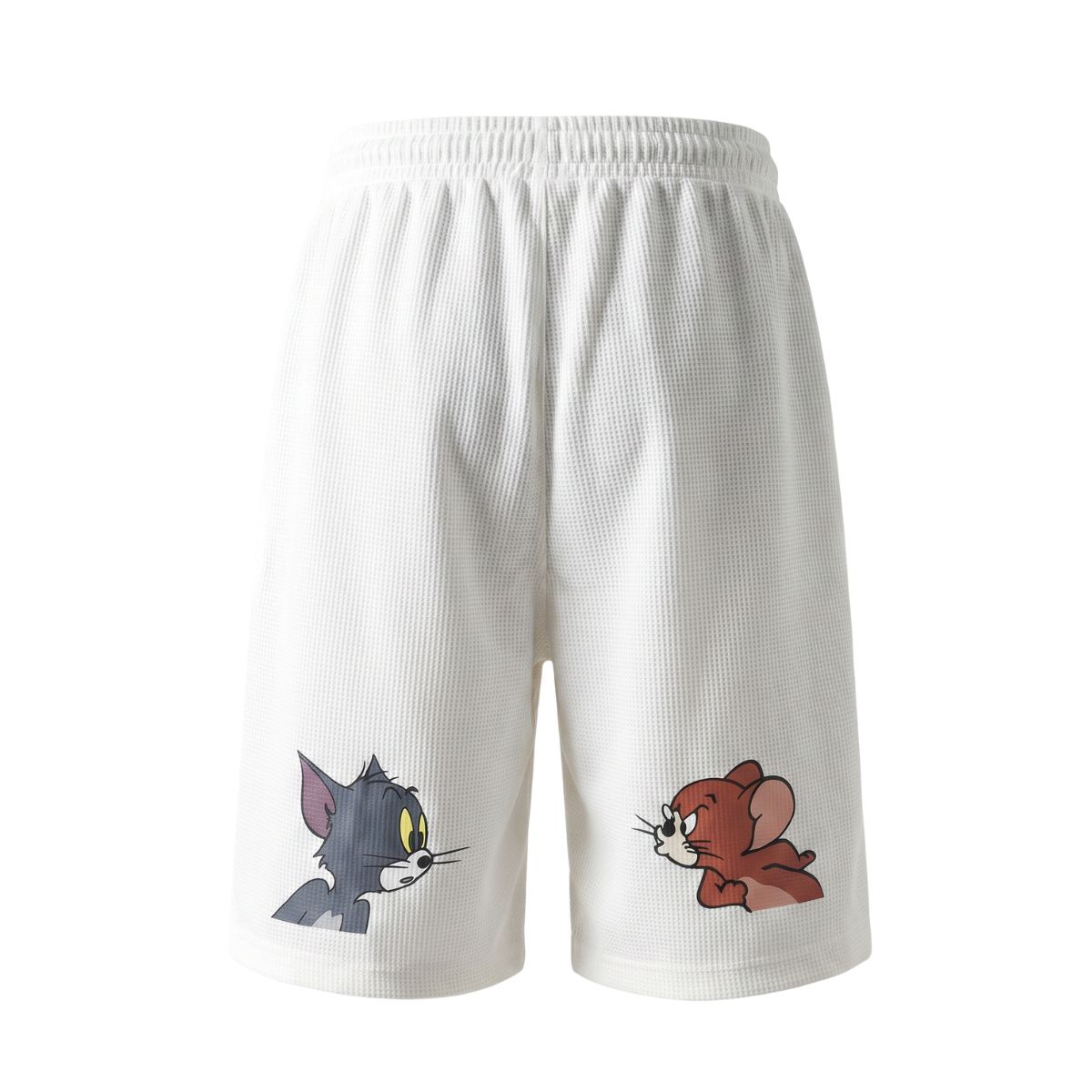 26 Tom and Jerry Back Print Waffle Short Half Pants ユニセックス トム & ジェリー トムとジェリー バックプリント ワッフル素材 ハーフパンツ ショートパンツ