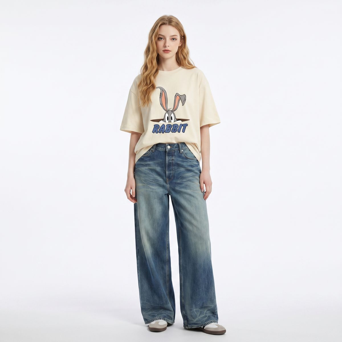Bugs bunny print T-shirt ユニセックス 男女兼用バックスバニープリント 半袖 Tシャツ