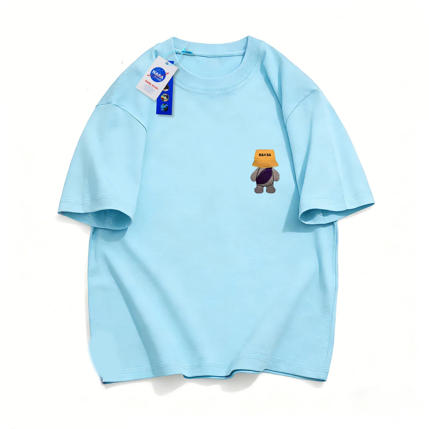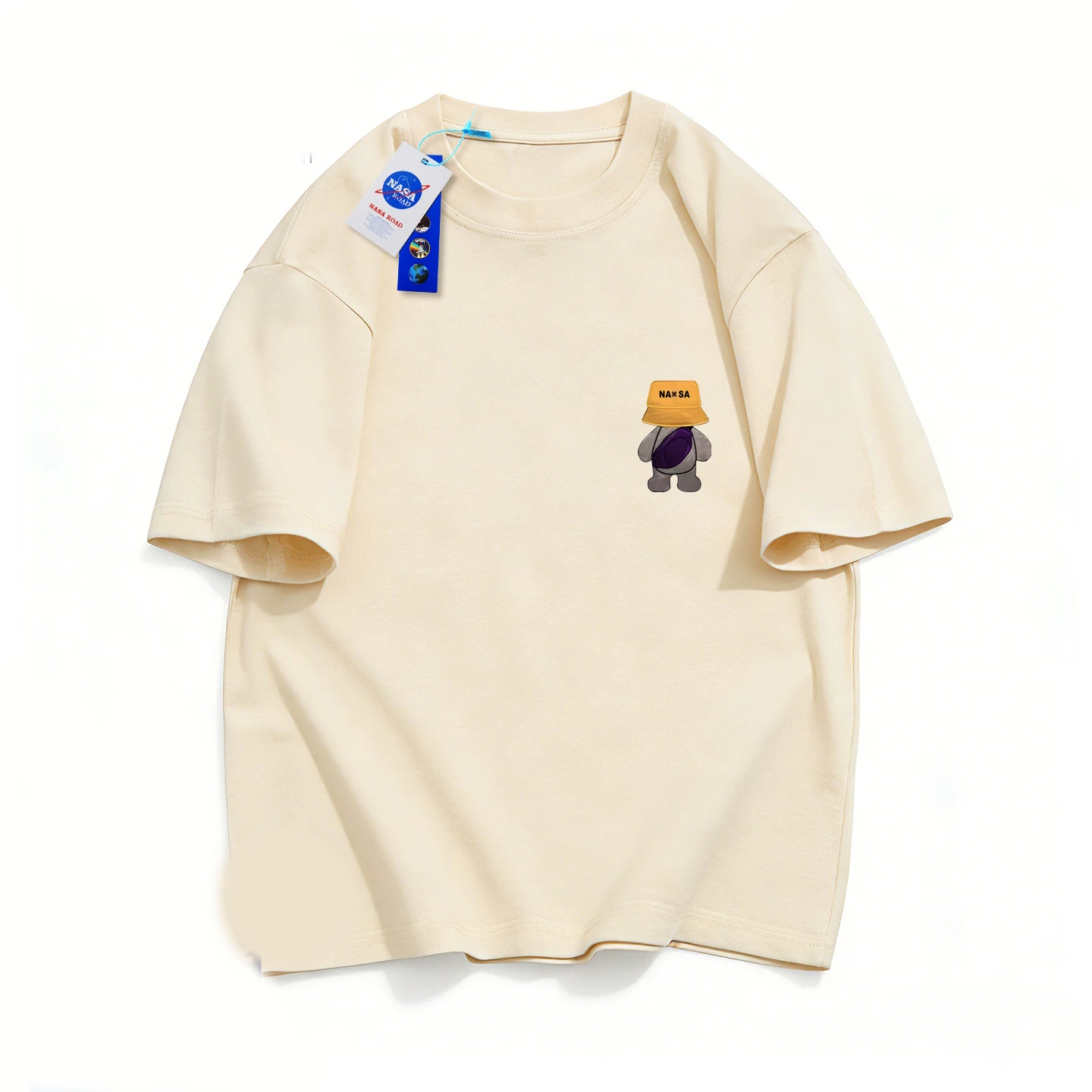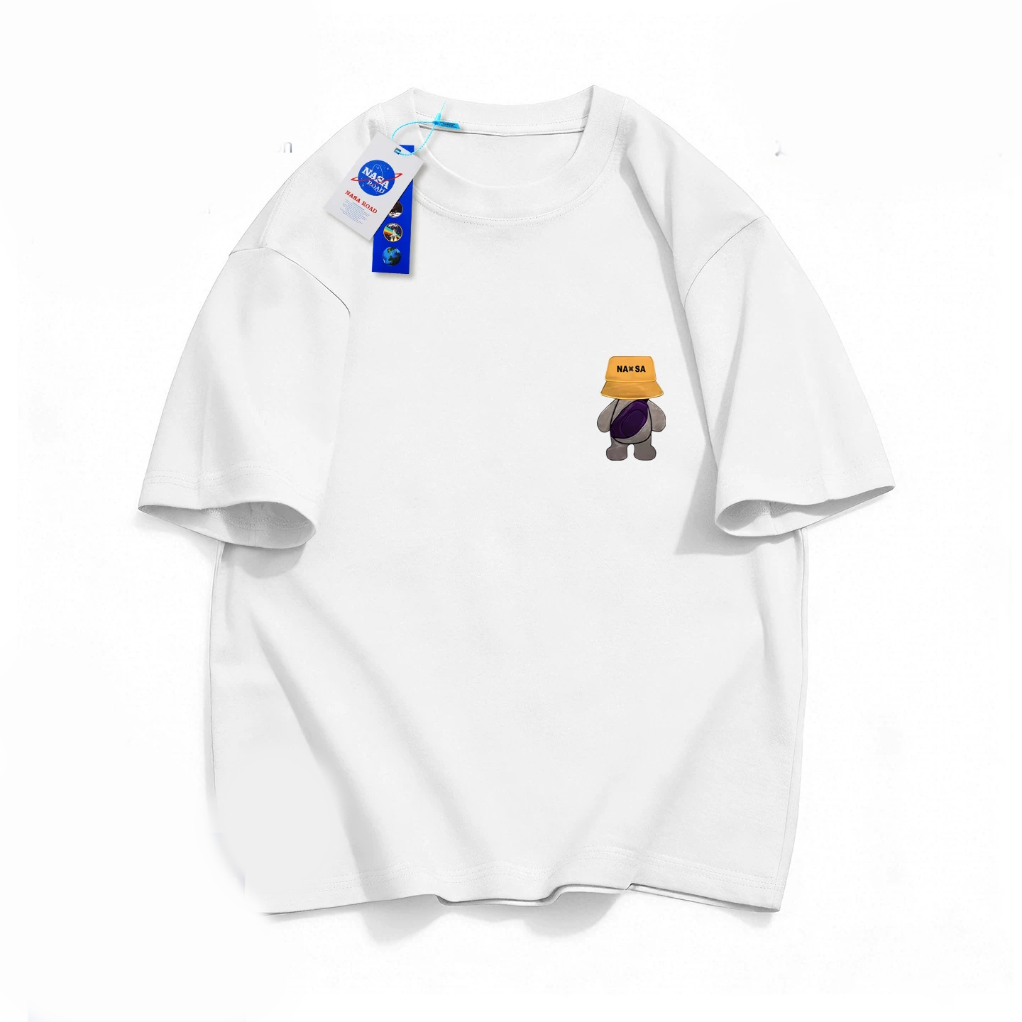 NASA x One-Point Walking Bag Bear Print T-Shirt ユニセックス 男女兼用ワンポイントNASAナサ×ウオーキングベアプリント半袖Tシャツ
