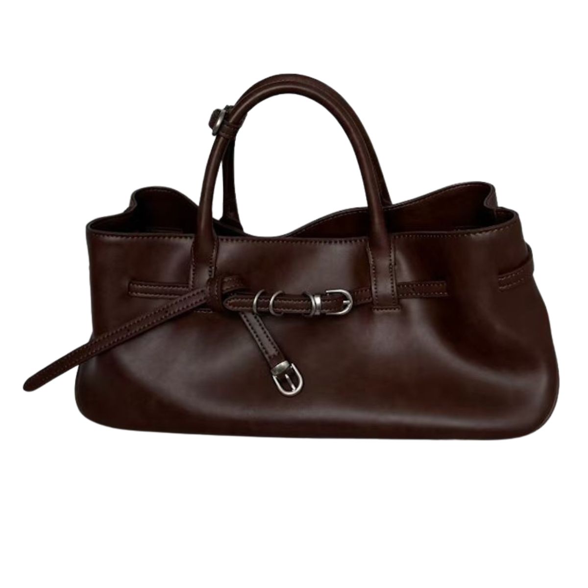 Belt buckle design rectangular leather tote shoulder bag ユニセックス男女兼用ベルトバックルデザイン横長レザートートショルダーバッグ