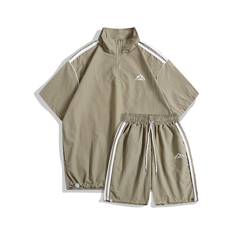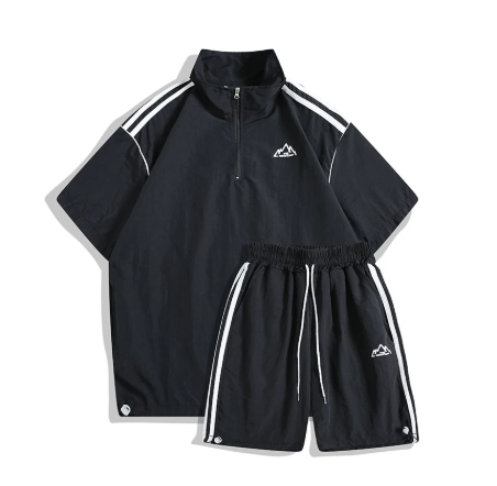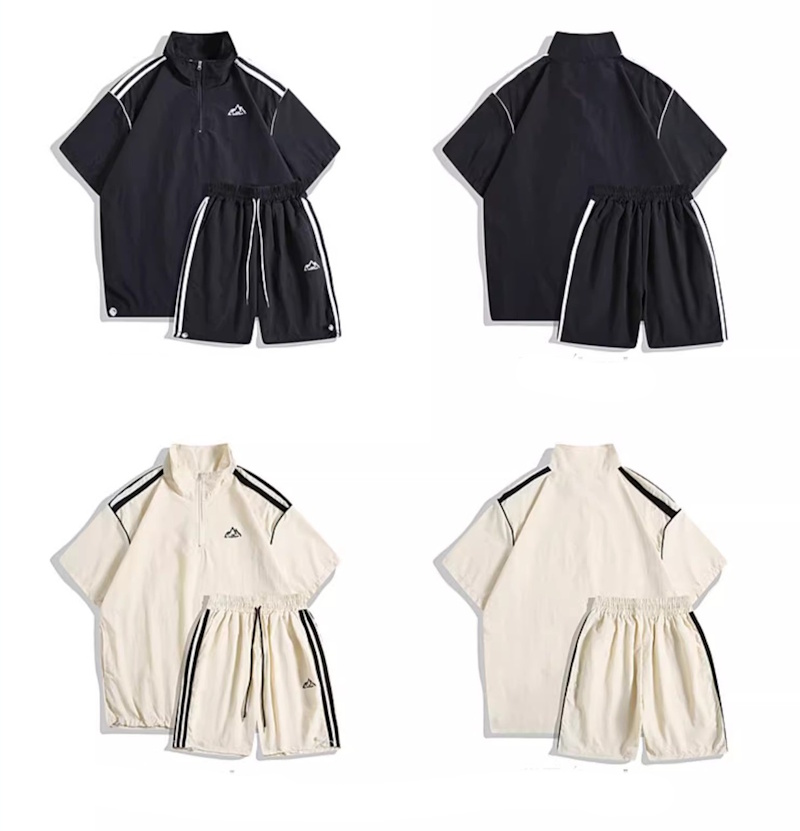 Half-zip stand-collar short-sleeved jacket and shorts set setup ユニセックス男女兼用 ハーフジップスタンドカラー半袖ジャケット&ハーフパンツセットアップ