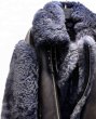 Women's Elegant Style Puffy Fur Leather Jacket Navy Oversize One Fur Sheepskin Coat リアルシープスキンオーバーサイズジャケット コート