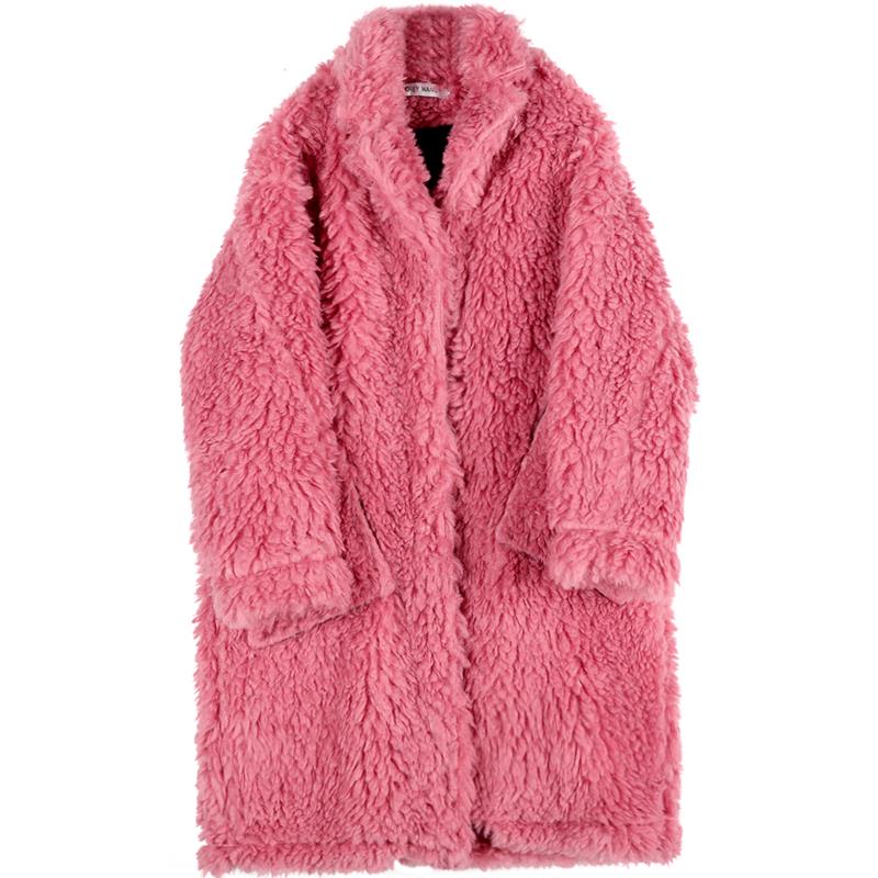 Women's Lazy pink circle hair long over the knee oversize woolen coat エコファーロングコート ジャケット