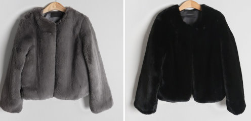 Women's imitation rabbit fur grass short jacket エコラビットファーシンプルジャケット ショートコート