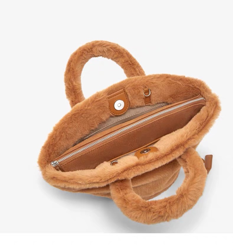 Woman's one-shoulder mobile handbags wild fashion small fragrance lady bag モコモコファーワンショルダーモバイルハンドバッグスモールトートショルダーハンドバック