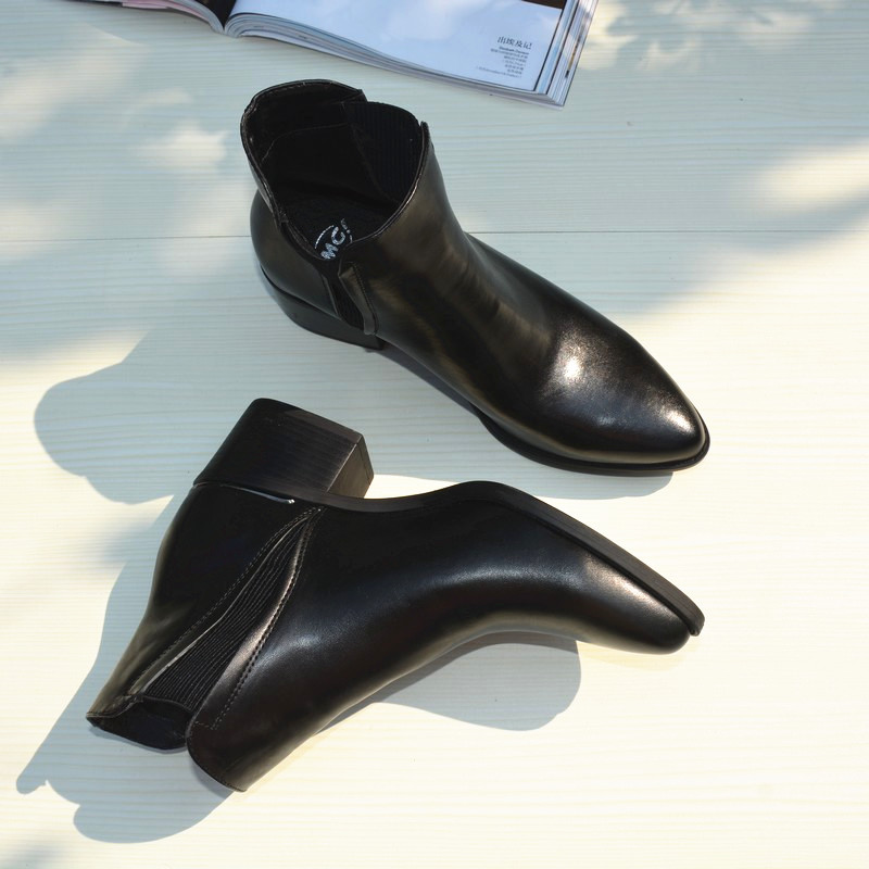 Women's pointed Chelsea boots leather British wind Martin boots ankle boots short boots レザー ポインテッドトゥ サイドゴア アンクル ヒール ブーツ