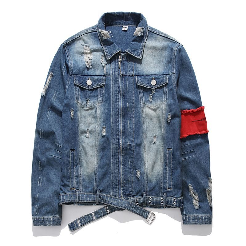 men's wash old loose hole denim jacketj blouson ユニセッ クス男女兼用デニムダメージジップアップGジャン ジャケットブルゾン