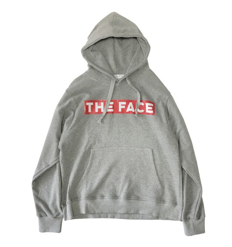 men's oversize round neck hooded sweater men and womenユニセックス男女兼用レッドボックスTHE FACEロゴプリントフーディーパーカー トレーナー